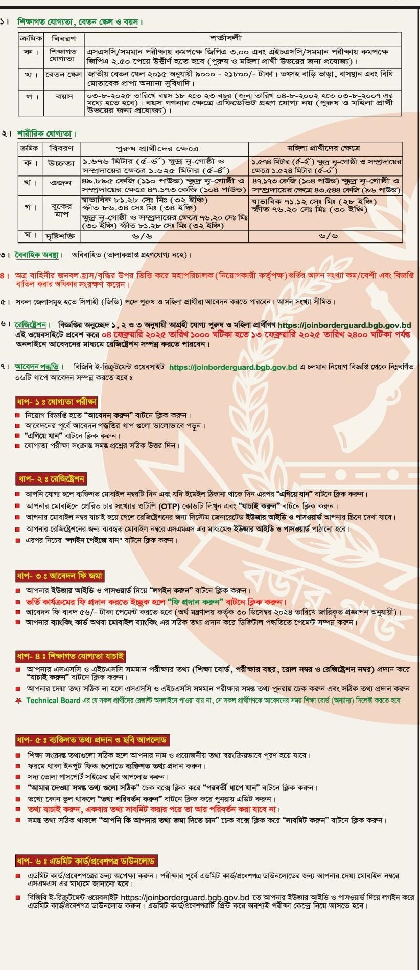 BGB job circular 2025, Application processes, etc available all related information is now published here. We will also publish more job circulars under Border Guard Bangladesh (BGB) here.. So keep your eye regularly on visa.jobcircularpro to get regular updates on BGB Job Circular 2025.
