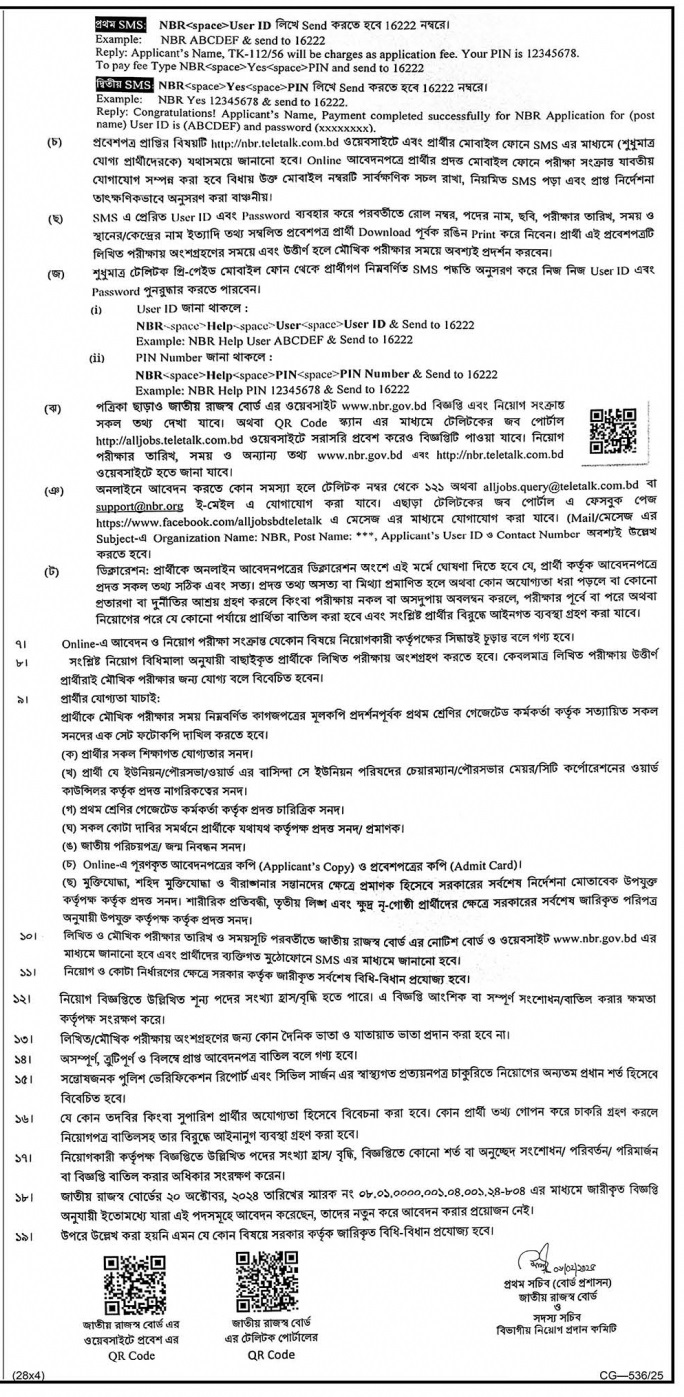 National Board of Revenue Job Circular 2025 offers people exciting career opportunities in the government sector. National Board of Revenue think that young and energetic people are the key to success in this sector that creates brightness in our country. Otherwise, the National Board of Revenue helps us to social economics. Otherwise, you can visit the official website of the National Board of Revenue which is www.nbr.gov.bd. It’s a mental subject and invisible. If you want to apply for this job, you should take preparation within short time. National Board of Revenue Job Circular 2025 original job circular converted to an image file,so that everyone can read easily or download this job circular. National Board of Revenue Job Circular 2025 has been given below.